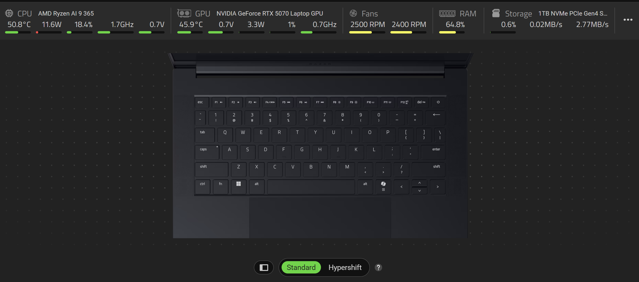 @tomey @CatLord @elftummy I'm on the 14" sitting in my living room with an ambient temp of 72. My 16" upstairs is on a cooling pad nd sometimes when I do AI shit it ramps up the fans to 6000+rpm and it sounds like a jet with temps around 80C. I think it's because of the fact razers allow the GPU to get more power than other manufacturers. I think the TDP on this one is 140W so my other must be 160-180W. That's a lot to dissipate in a tiny aluminum frame