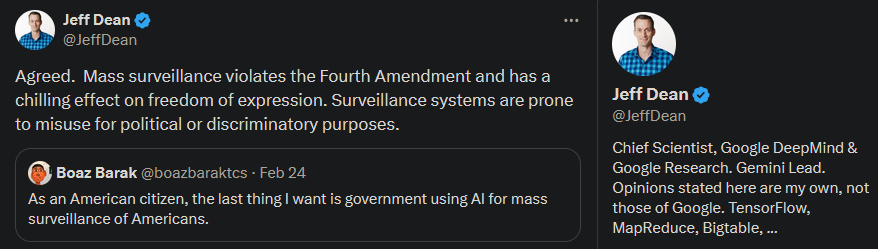 The face that the others, ie Palantir, Google, OpenAI and Xai had no problem with this is disturbing.