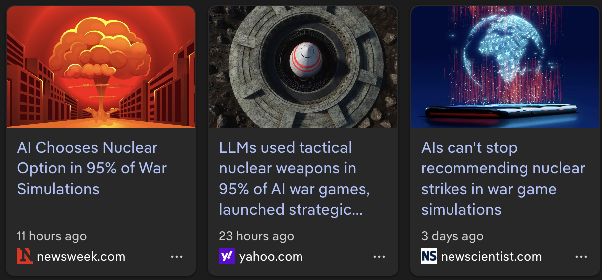 Don't get me wrong here- I would have payed good money to be in the Pentagon with all the military leadership wargaming with AI, just to see their reactions when, no matter what scenario-based input they gave, the AI recommended the nuclear annihilation of Israel and the extermination of all jews as the only acceptable & logical course of action.