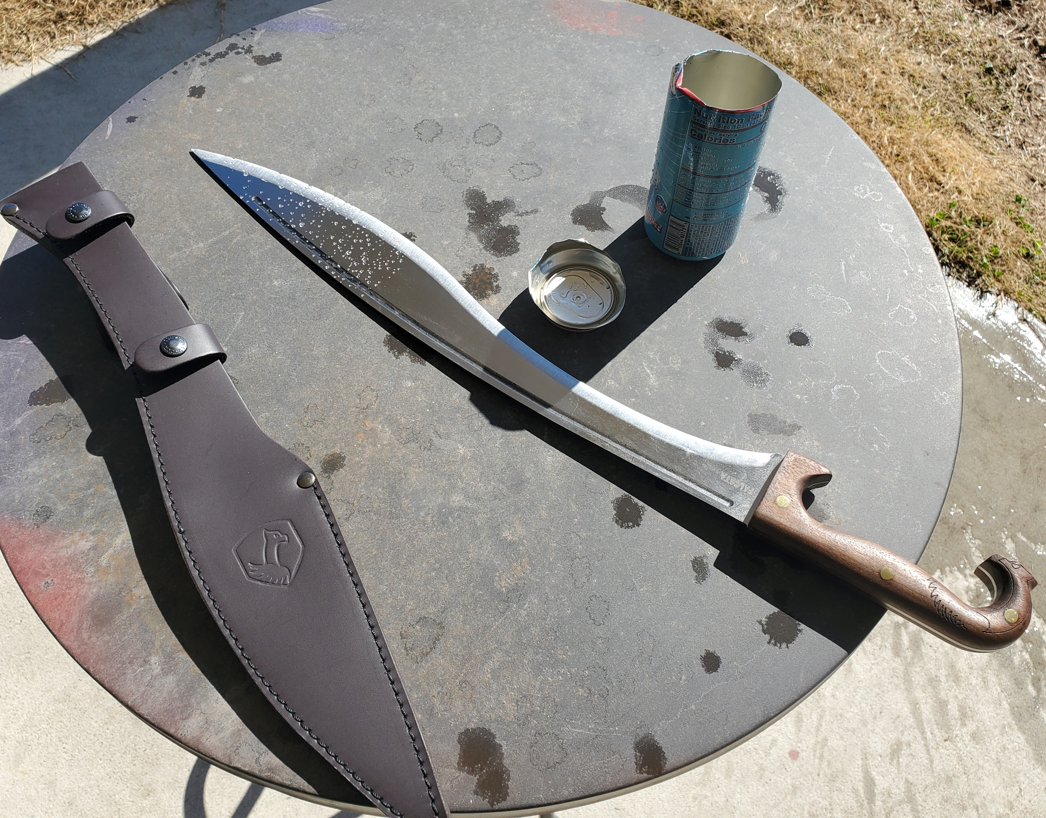 The condor falcata is actually a very decent sword. On soft targets like bottles, It's like having a cheat code. That belly is a monster cutter.