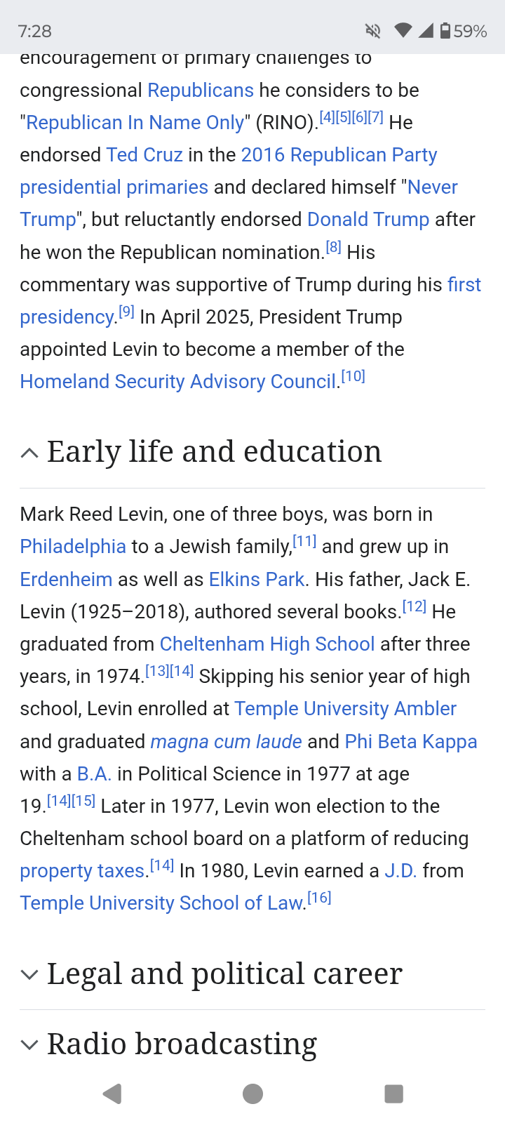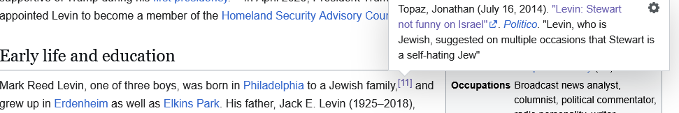Yeah, I just checked, and I'm confused now, because the "source" it cites for that does not say that (typical wikipedia). His last name was Levin though (his father was Jack E. Levin, an author who only seemed to write book on surface level American history), so it's probably true.