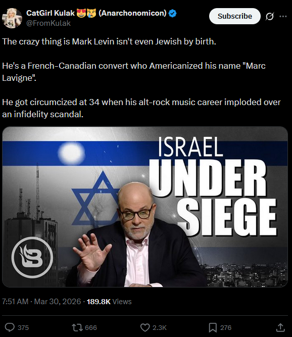 I mean, levin has painfully stereotypical Jew face, voice, mannerisms, views, neuroticism...