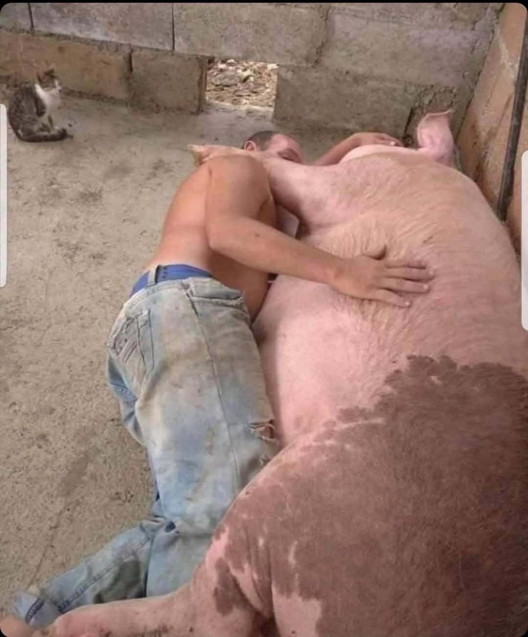 Big Pig gets porked by shirtless stranger... or did Big Pig porked the shirtless stranger?