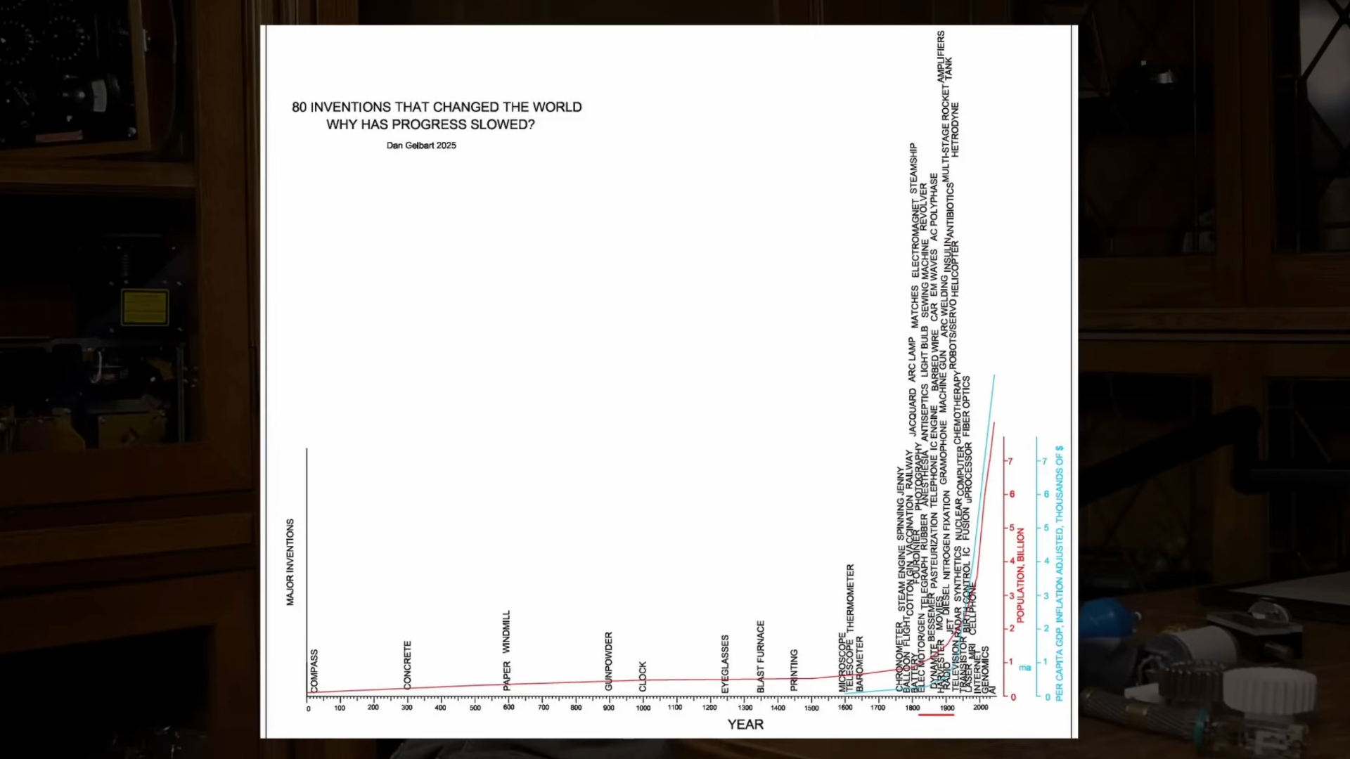 > Of the 100 most important inventions in the world, most of them are crowded between the years of 1850 and 1920.