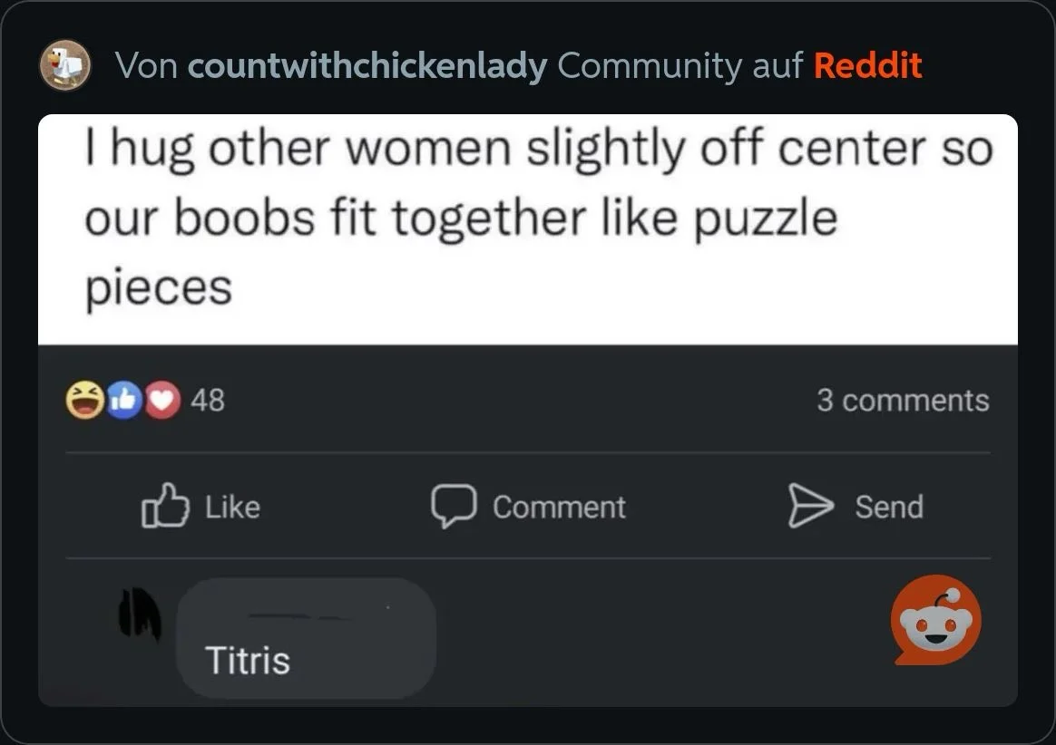 mia @mia@movsw.0x0.st remote 6w Copy link Open link @yew @Mabelz i hug women slightly off-center so her face is right between my boobs