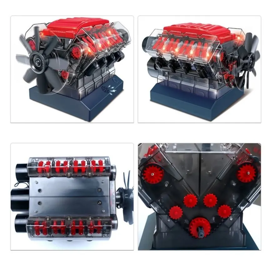 The parts turn and the spark plugs light up in time.